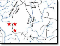 Everyone met at Chuck and Joan Ernst's house at 13300 Ivakota Farm Road. Blake provided an introduction and brief overview of the fortifications. We then drove to the two sites on the east side of Balmoral Greens Avenue.